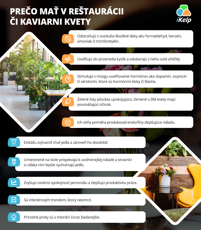 V podniku je dôležité, aby sa v ňom zákazníci cítili dobre. Jednou z ciest, ako to dosiahnuť, je umiestniť doň rastliny. Tie majú preukázateľne pozitívny vplyv na človeka. Aké sú hlavné benefity kvetinovej výzdoby v reštaurácii či kaviarni?