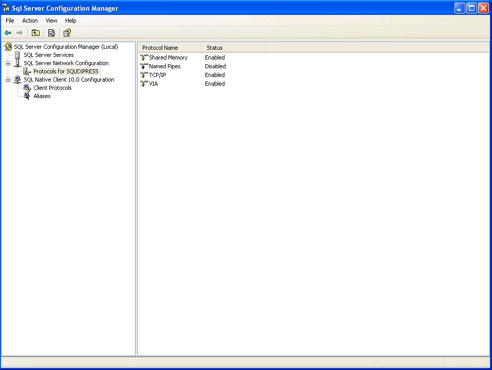 - V ľavej časti SQL Server Network Configuration - > Protocols for SQLEXPRESS je potrebné vykonať tieto nastavenia: