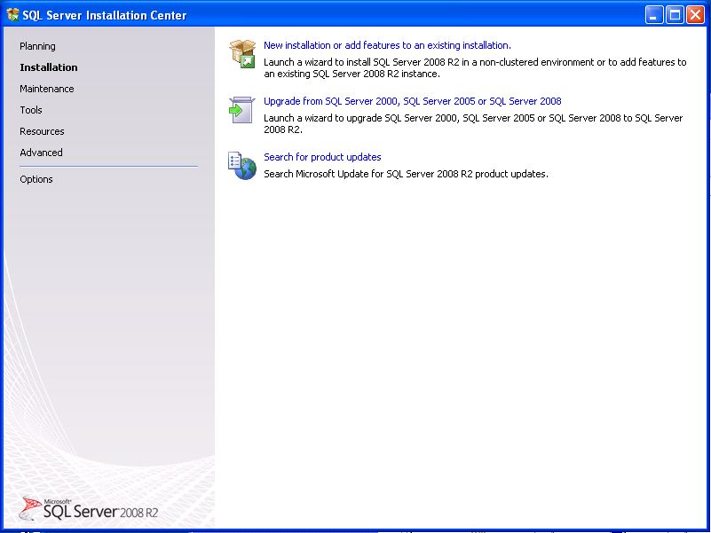 - Kliknite na New SQL Server stand-alone installation or add features to an existing installation.