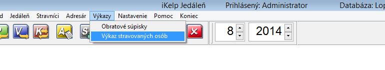 1. V menu aplikácie vyberte v časti Výkazy -> Výkaz stravovaných osôb.