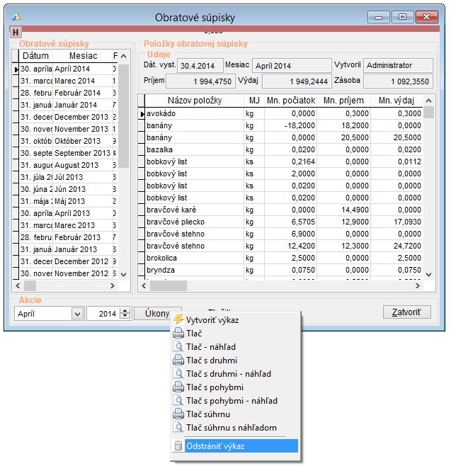 7. Vytvorenie výkazu Obratová súpiska za opravované mesiace od najstaršej po najnovšiu.