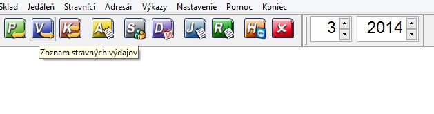 1. Otvorte si zoznam stravných listov kliknutím na tlačidlo "V" na nástrojovej lište aplikácie, alebo kliknutím na Sklad -> Stravné listy v menu aplikácie.