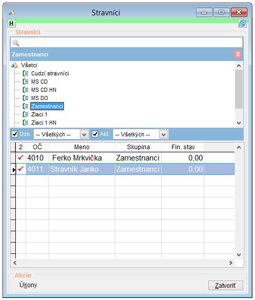 2. Označte si stravníka, prípadne stravníkov v skupine, ktorým je potrebné údaje pregenerovať. (V tomto prípade sa menila norma zamestnancom. Kliknutím na danú skupinu sa vyfiltrujú len stravníci patriaci do danej skupiny.)