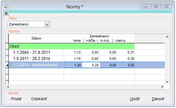 Scenár si opíšeme na nasledovnom príklade. Vo februáry 2014 došlo k zmene normy zamestnancov na nasledovný mesiac, tj. marec 2014. Týmto mala byť pripočítaná k stravnej jednotke réžia 0,20€. V priebehu mesiaca máj bolo ale zistené, že výška poplatku za réžiu mala byť len 0,15€ a je potrebné to spätne upraviť.