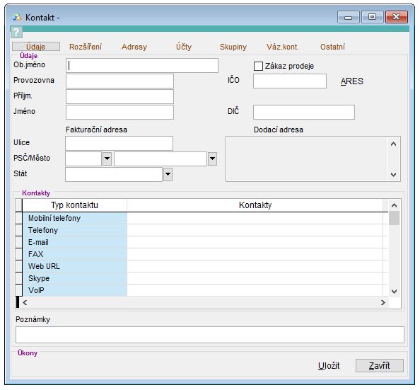 Vytvoření nového kontaktu