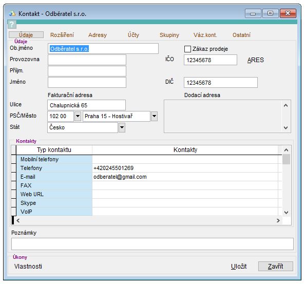 2. V případě, že evidujete společnost, je vhodné vyplnit IČO, DIČ a IČ DPH pokud ho má daná firma přideleno.