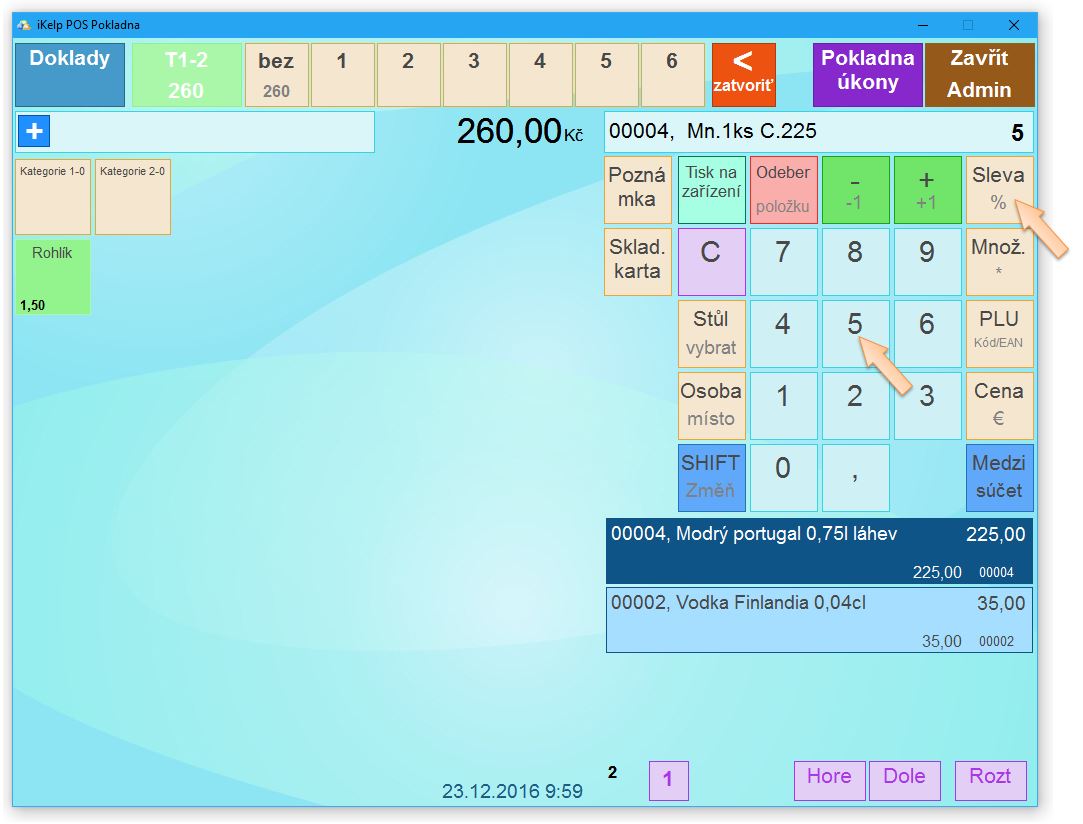 2. Následně na klávesnici zadejte požadovanou výšku slevy a klikněte na tlačítko Sleva %.