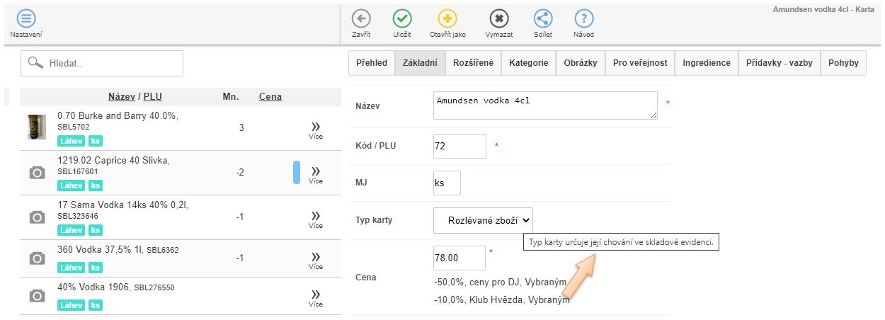 Rychlou nápovědu získáte i postátím kurzorem myši nebo klikem na název