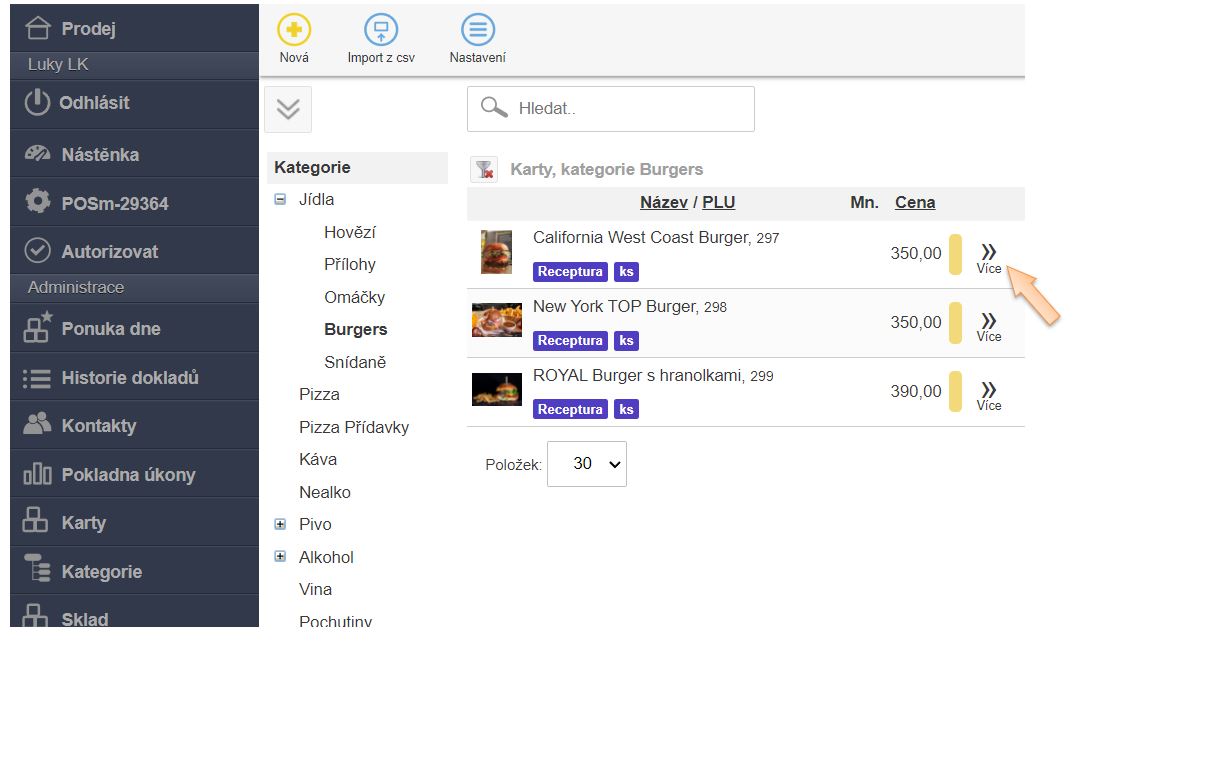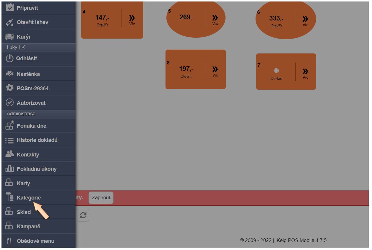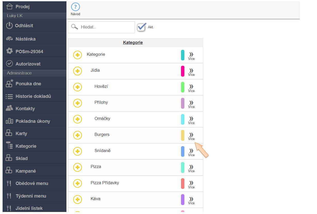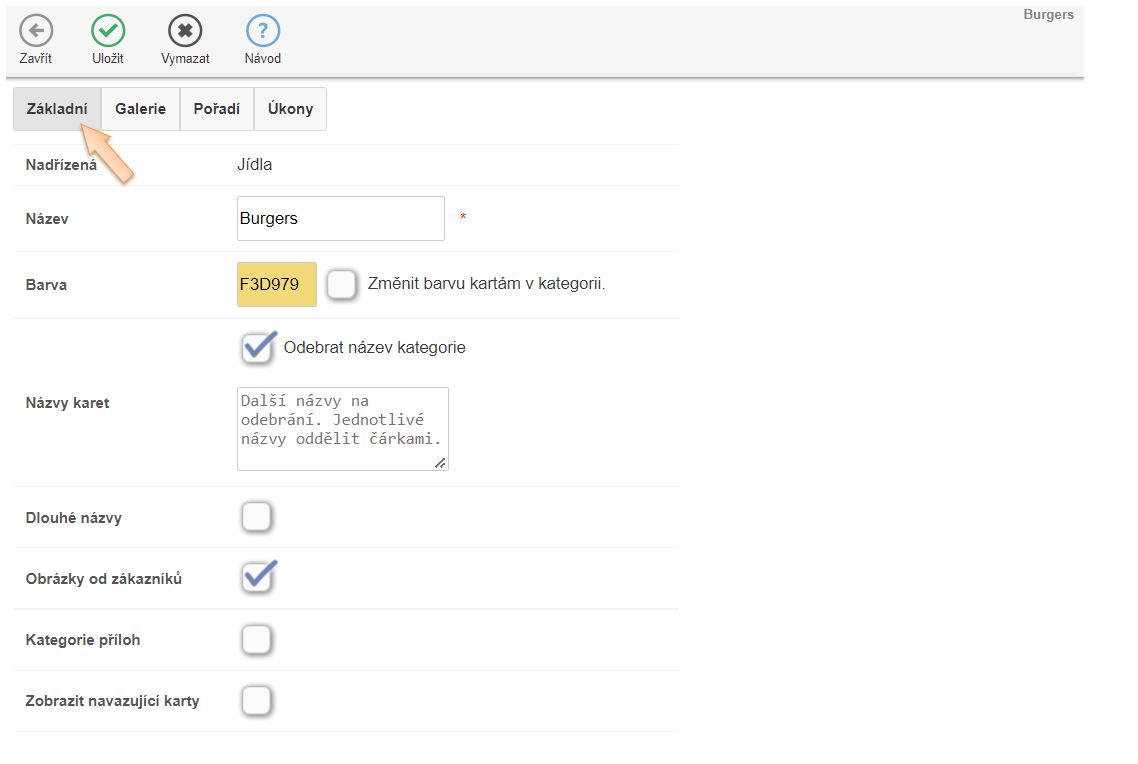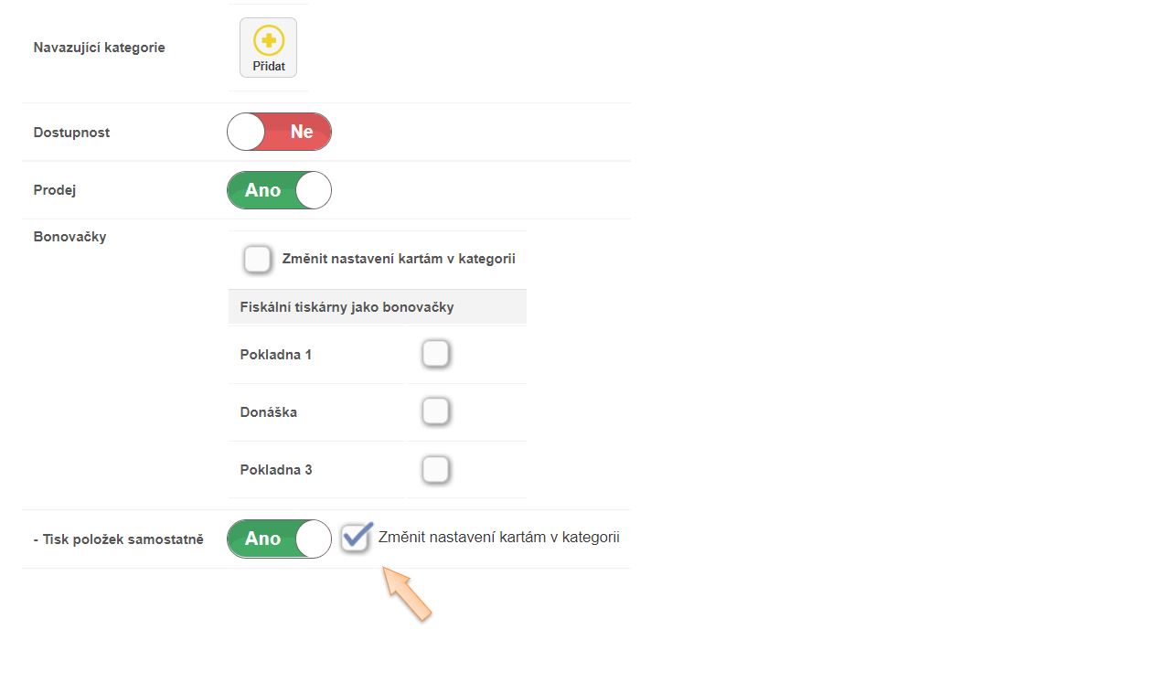 Nastavení doporučujeme aplikovat pouze na hlavní jídla, resp. kategorie. Nastavení neaplikujte na karty, nebo na kategorie přídavků a vazeb.