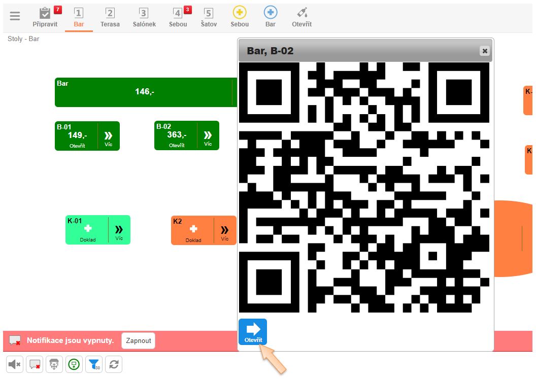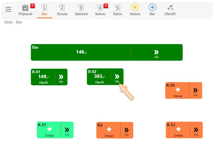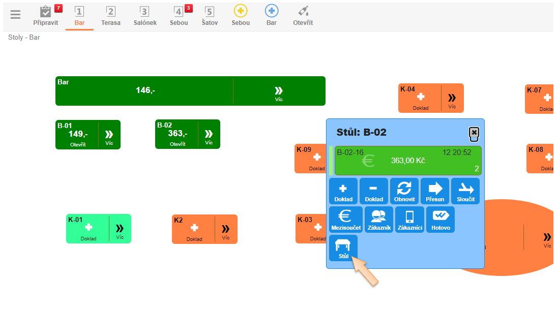- Vyberte možnost Stůl, pro zobrazení detailu stolu.