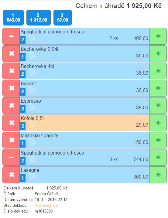 1. Dříve, než je možné přesunout z existujícího dokladu jen část položek, je potřebné tyto položky rozúčtovat na osoby. Položky je možné na osoby účtovat hned při jejich objednávání zákazníkem, případně je rozdělit na osoby dodatečně. (Postup účtování s účtováním na osoby se dozvíte v návodu Přidávání položek do dokladu (do otevřeného účtu)). Více informací o dodatečném rozúčtování položek mezi jednotlivé osoby se dozvíte v návodu Rozúčtování na osoby v položkách otevřeného účtu.)