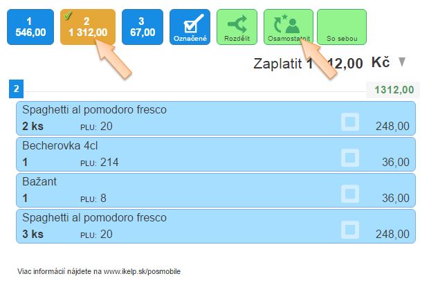 Přesun položek na nový stůl (doklad) v iKelp POS Mobile