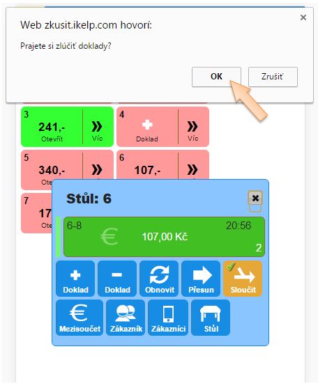 Sloučení dvou dokladů v iKelp POS Mobile