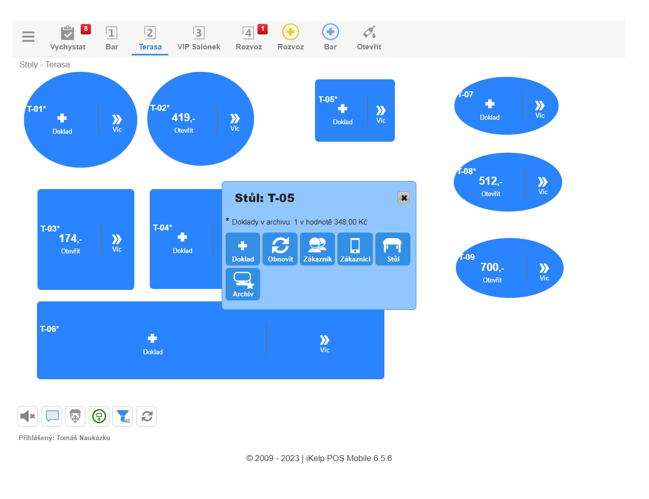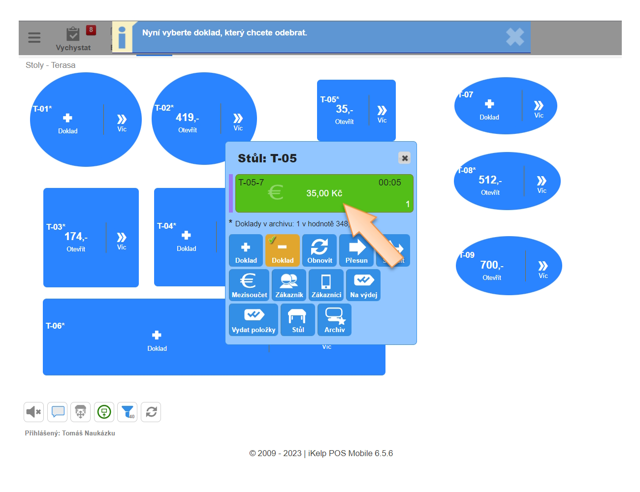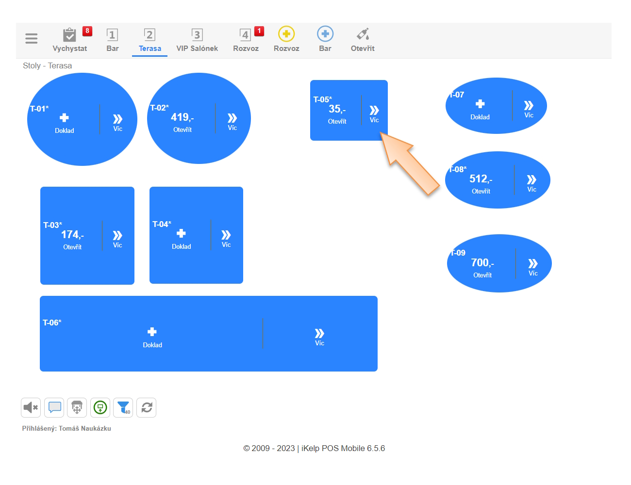 - Klikněte na Více na daném stole, kde je objednávka vytvořená.