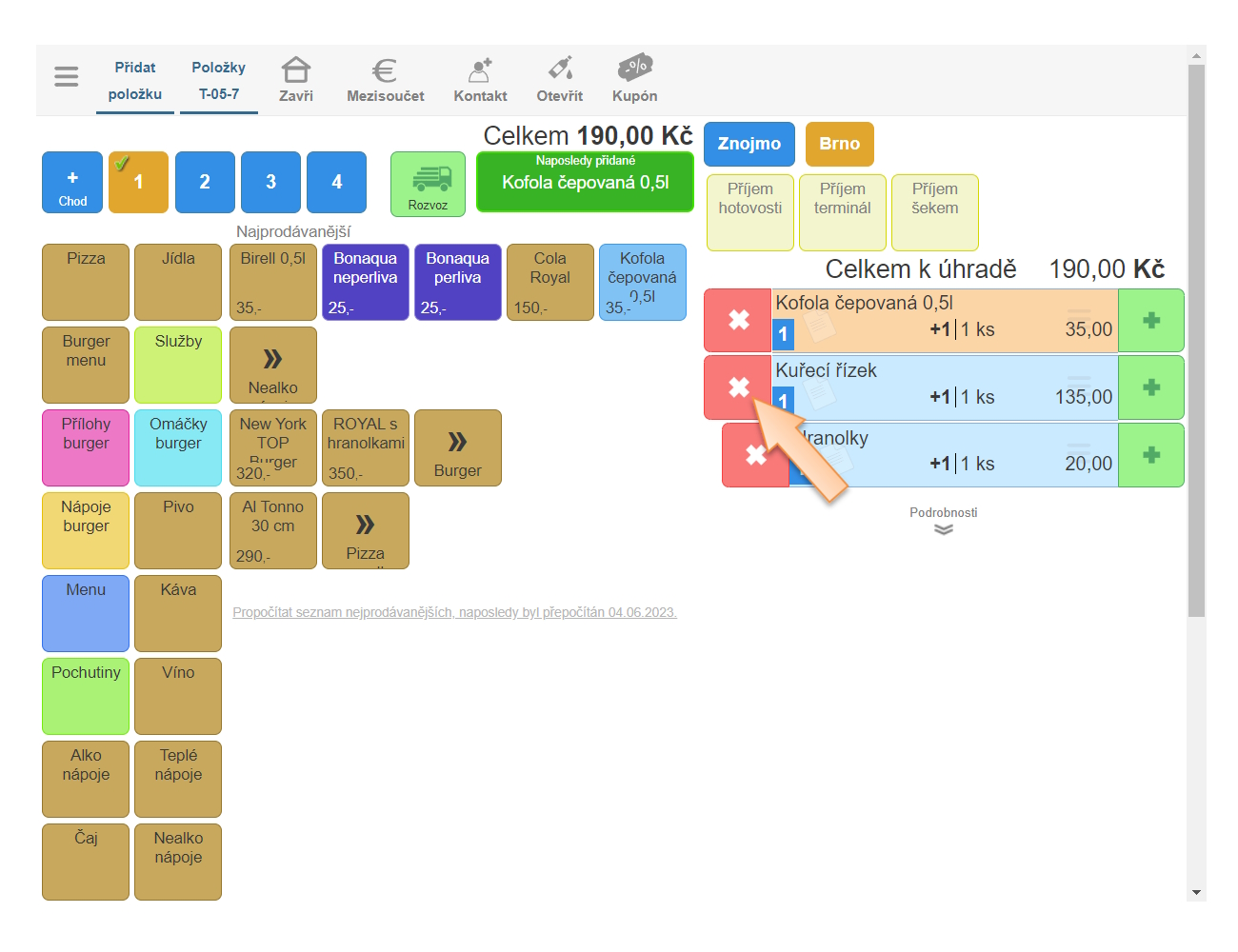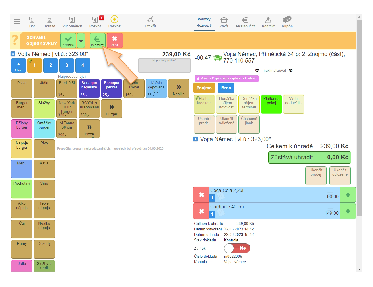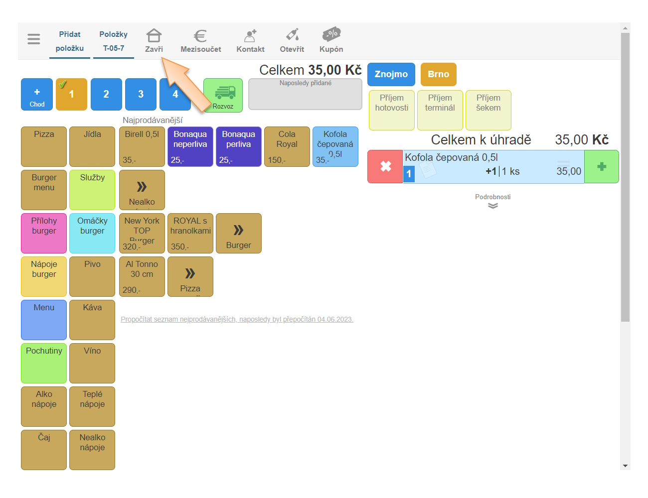 - Klikněte na Více na daném stole, kde je objednávka vytvořená.