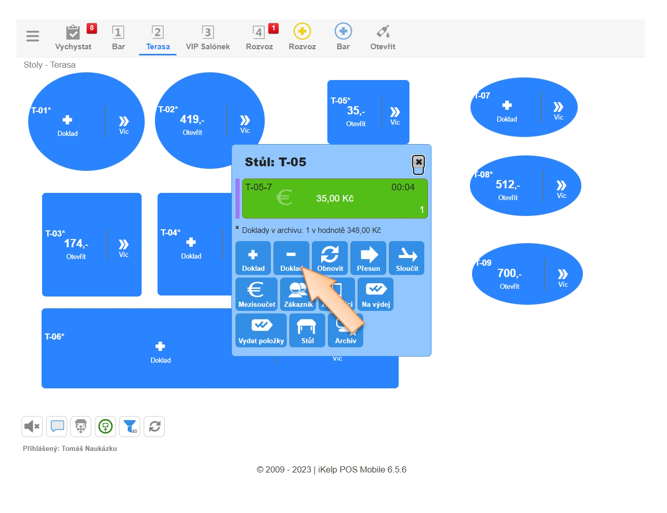 - Klikněte na tlačítko - Doklad.