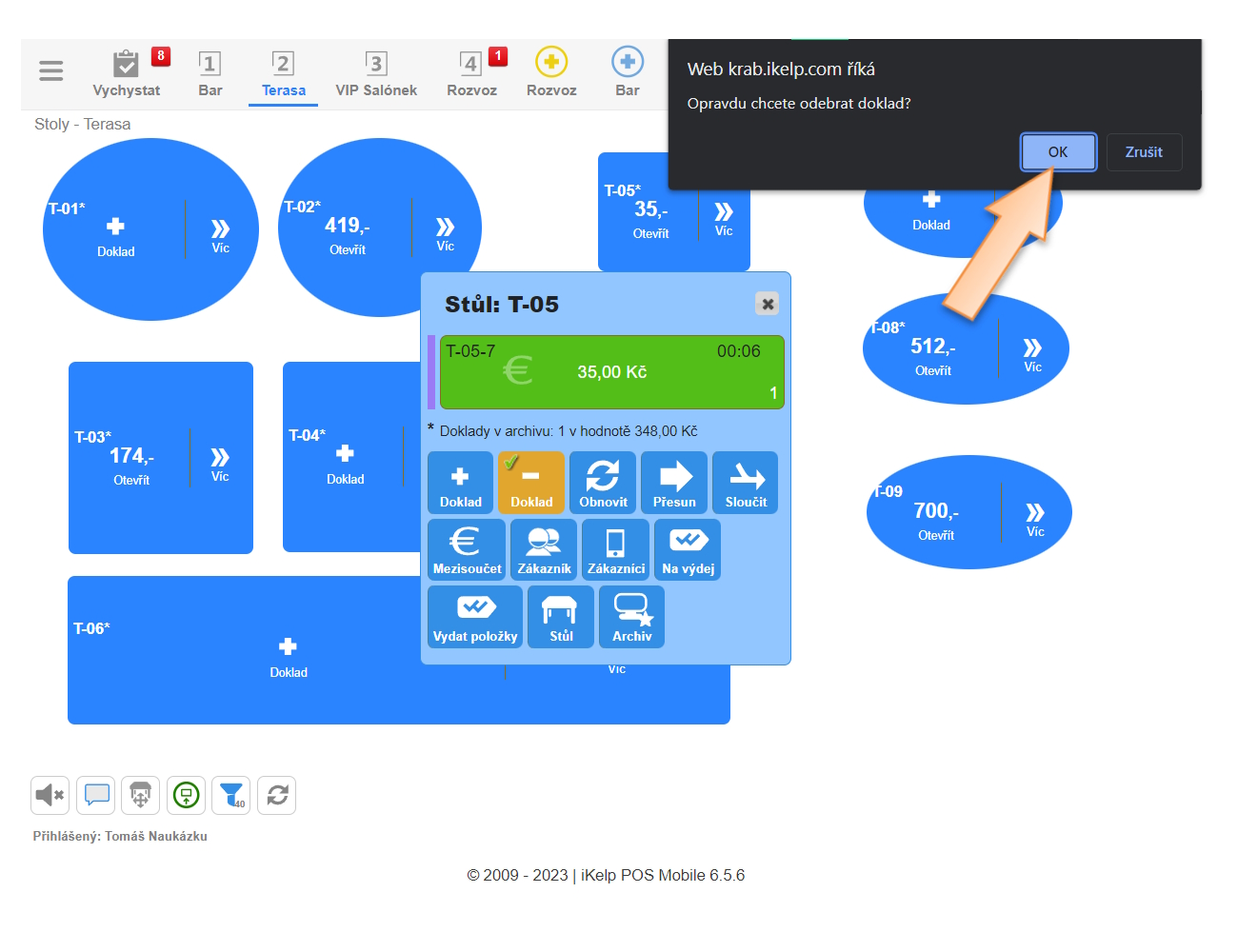 - Vyberte doklad, který chcete odebrat a potvrďte vymazaní dokladu.