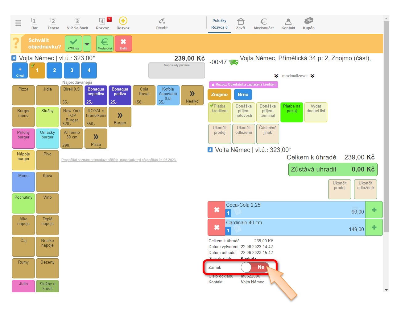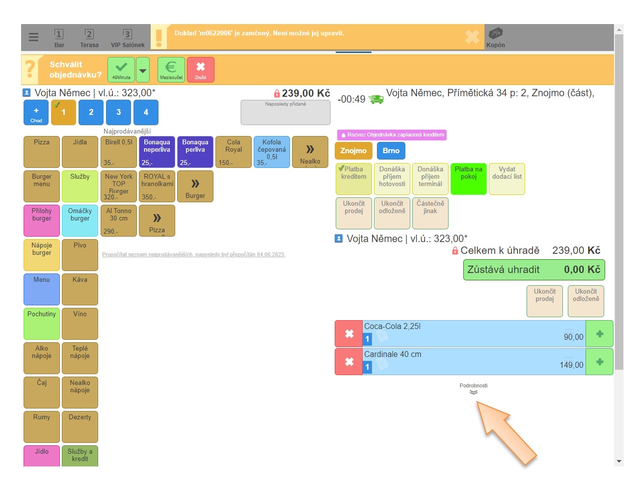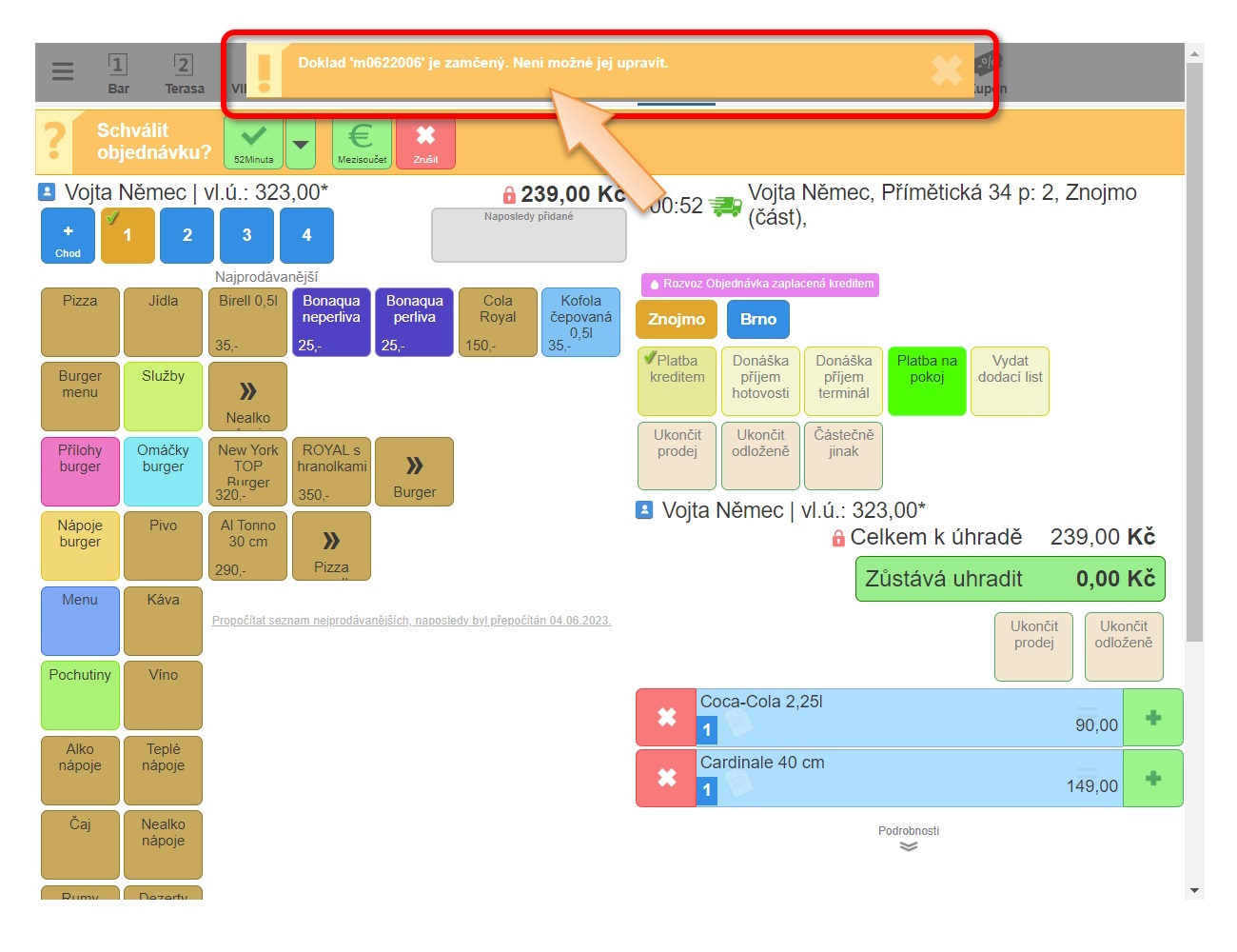 V tomto návodě vám vysvětlíme, jakým způsobem je možné odemknout zamčenou objednávku i to, jak následně takovou objednávku zrušit. K uzamčení dokladu dochází nejčastěji při přesouvání dokladů na jiný stůl, kdy si obsluha nesprávně zamění pojem Hotovo z pohledu vyřízení objednávky jako takové, s ukončením přesouvání dokladu. Objednávka může být uzamčena i systémově, pokud se jedná např. o objednávku z donášky, která byla zákazníkem uhrazena online. Tehdy by již obsluha do takové objednávky neměla vstupovat.
