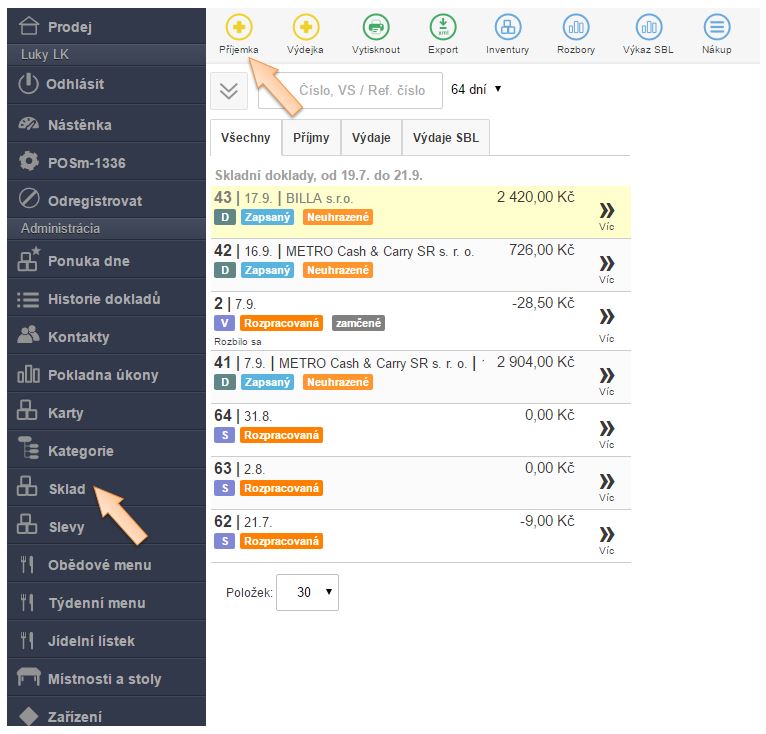 • Nákup zboží pokladničním dokladempři evidování skladového příjmu se očekává, že na dokladu od dodavatele jsou uvedeny jednotkové ceny s DPH.