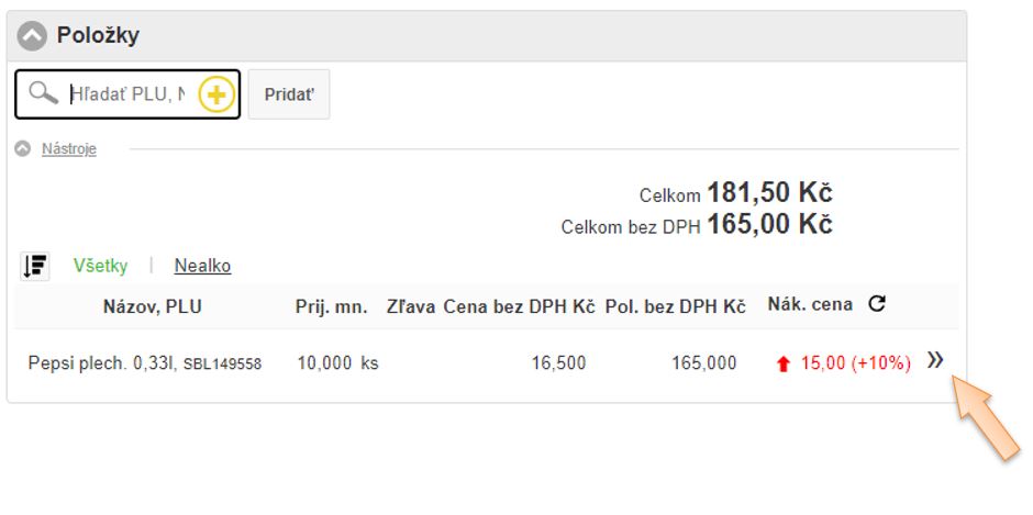 • Pol. bez DPH € - cena za položku bez DPH.