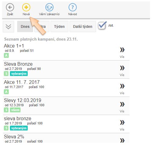 Seznam aktivních kampaní a slev