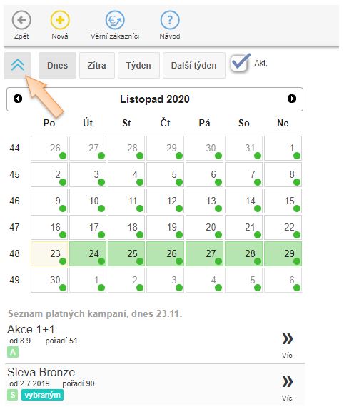 V seznamu kampaní se nachází také filtr, pomocí kterého je možně zobrazit, které kampaně jsou platné na příslušné období.