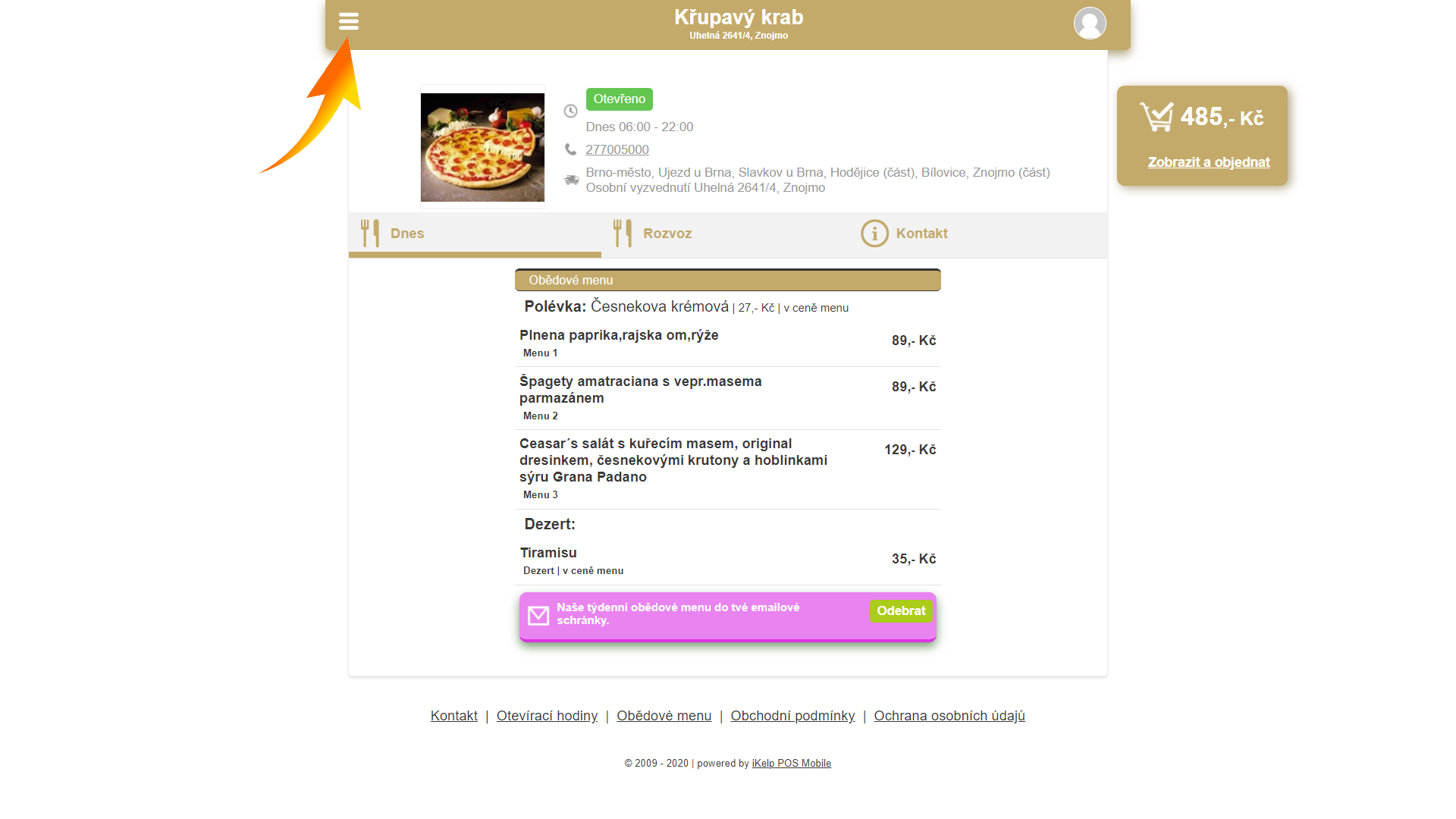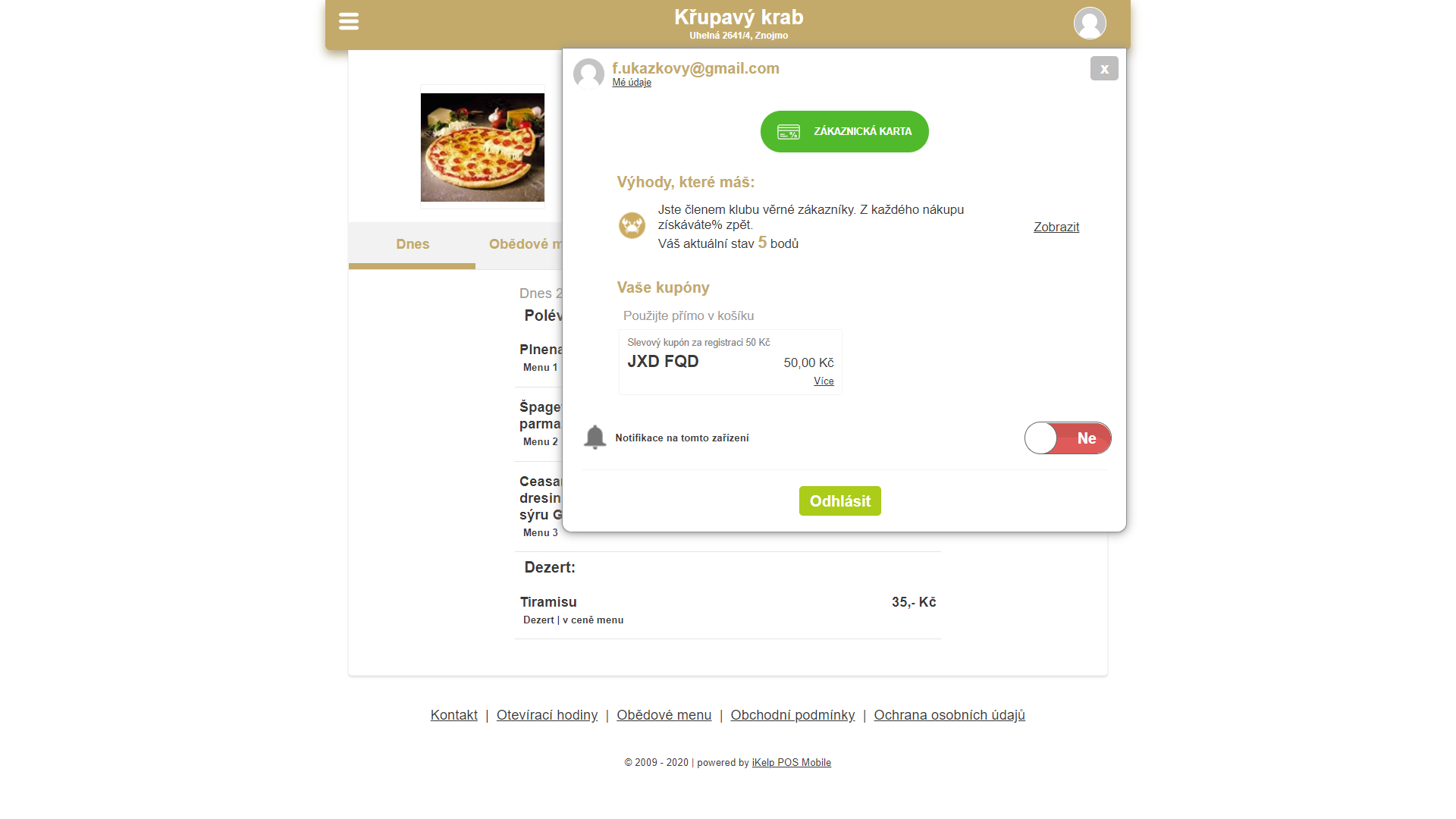 - Přihlaste se do zákaznického účtu Vaší restaurace nebo kavárny.