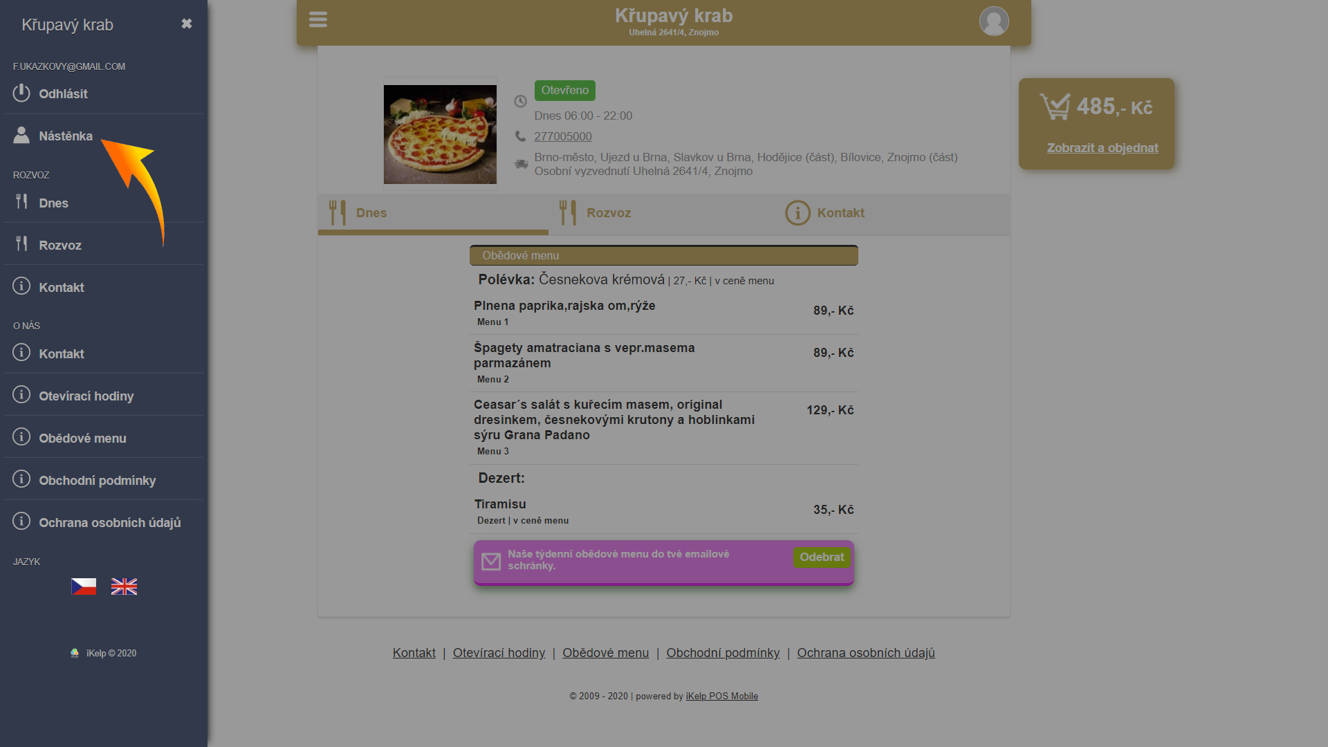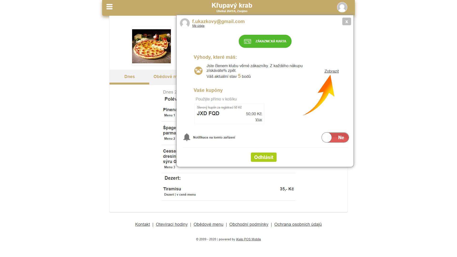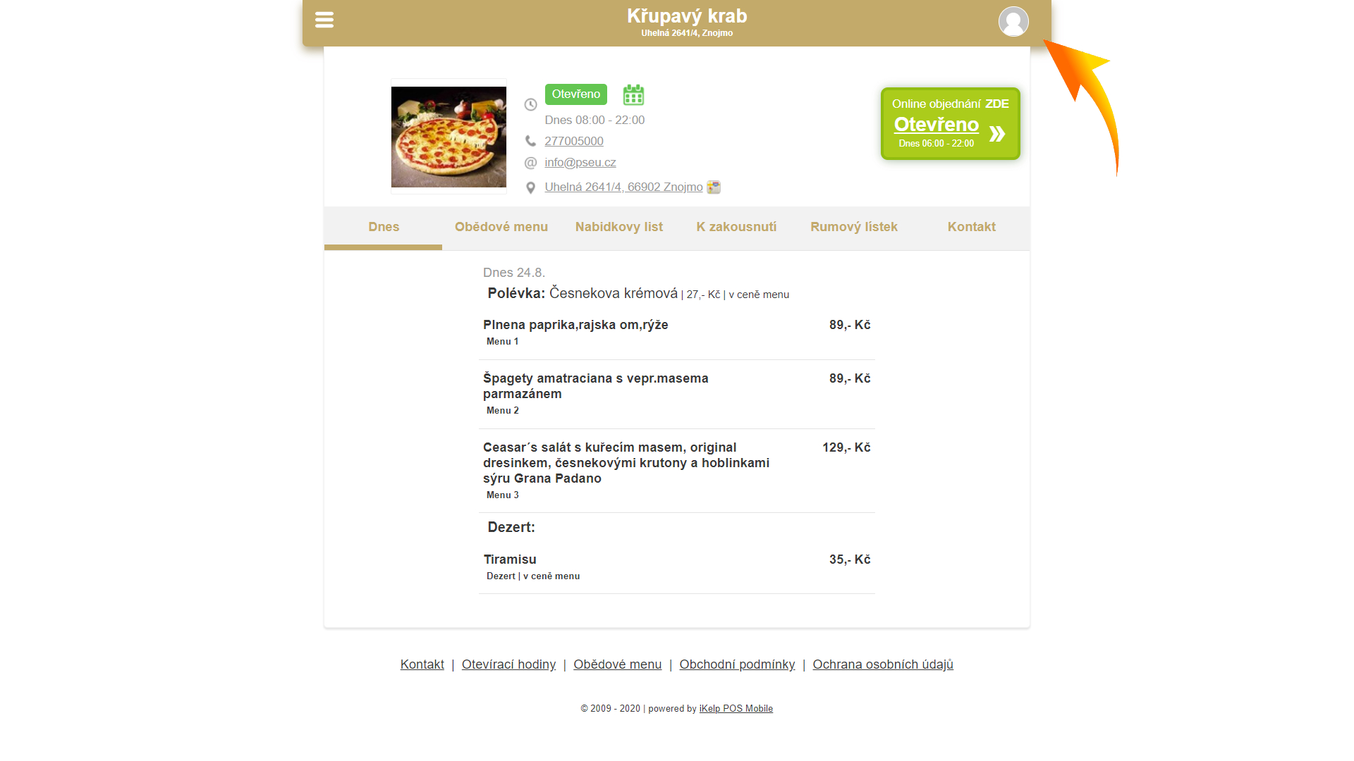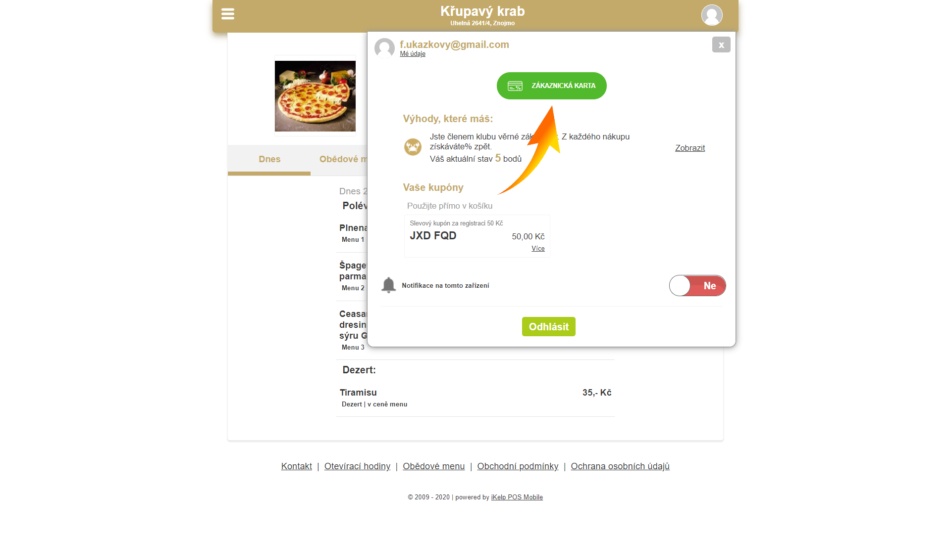 - Přihlaste se do zákaznického účtu vaší restaurace nebo kavárny.