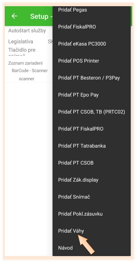 Konfigurácia váh (pre zariadenia s OS Android)
