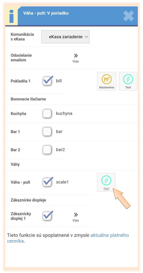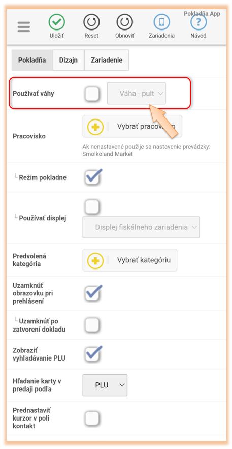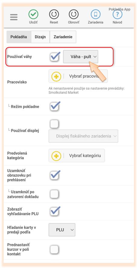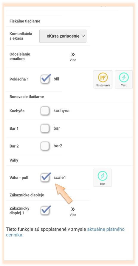 3. Skontrolujte, či máte v časti Váhy aktivované a aktívne zariadenie.