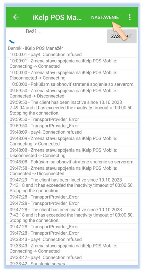- Spustite aplikáciu POS Mobile na zariadení so systémom Android.