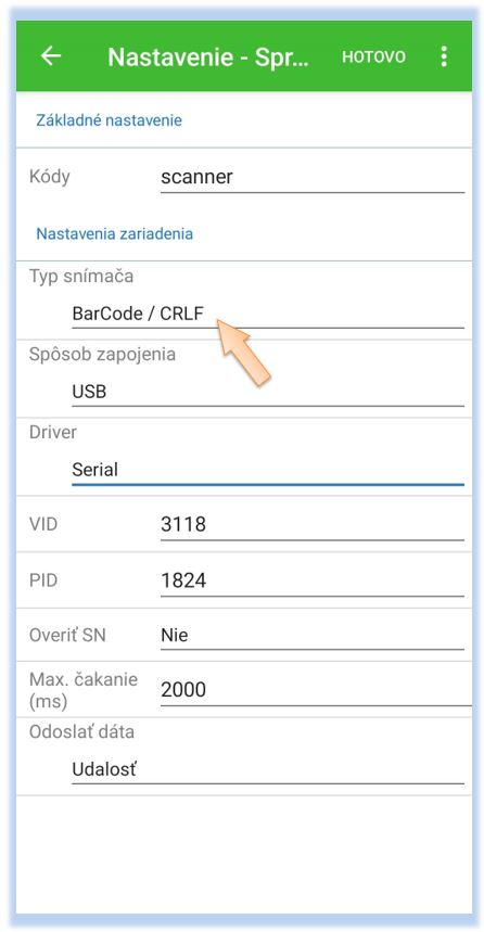 Pozor, v prípade novších skenerov od spoločnosti Honeywal, môže byť potrebné pre správne snímanie nastaviť "Sufix CR/LF" pre potvrdenie odsnímaného kódu.
