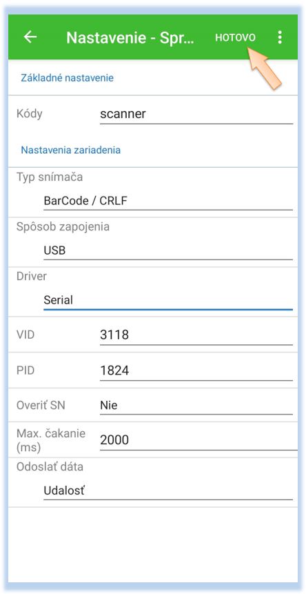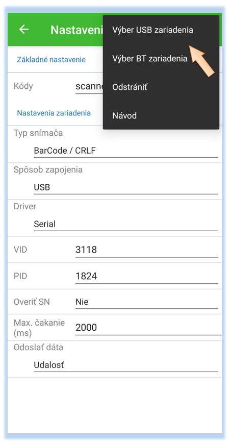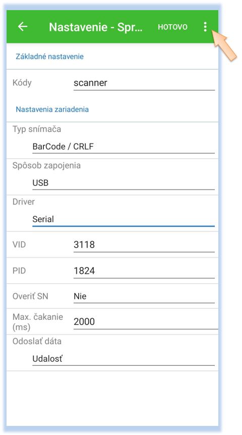 Po úspešnom nakonfigurovaní skenera je potrebné ho nadefinovať v samotnej aplikácii POS Mobile.