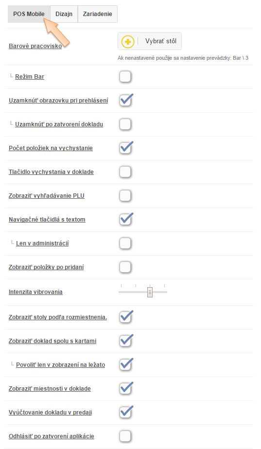 Predaj otvoriť v - v ktorej záložke sa má otvoriť predaj. (Vhodné nastavenie pre zariadenia s malým displejom.)