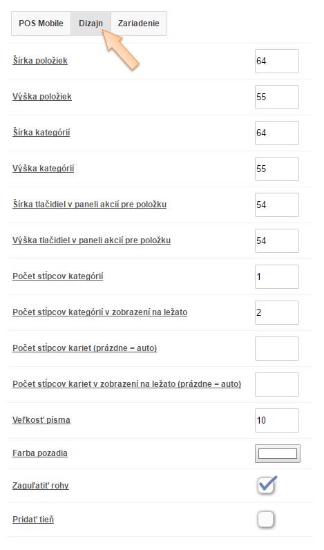 Výška položiek - výška tlačidla položiek zobrazovaných pri predaji. (Hodnota udávaná v px.)
