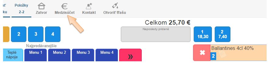 - Kliknite na tlačidlo Medzisúčet v otvorenom doklade.