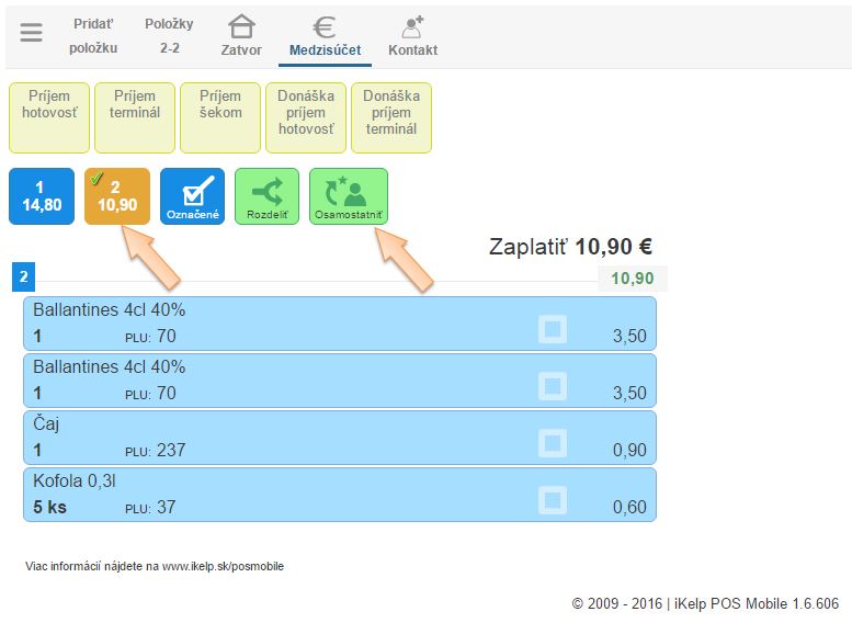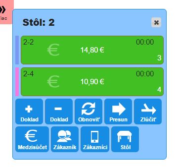 - Na danom stole sa vytvorí nový doklad, z položkami danej osoby, ktorý je možné nezávisle vyúčtovať, alebo presunúť na iný stôl. (Viac informácií a postup pre presun dokladu na iný stôl sa dozviete v návode Presun celého účtu na iný stôl.)
