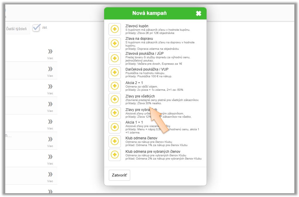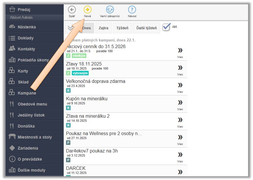 - V menu aplikácie v časti Kampane je potrebné vytvoriť novú kampaň - Zľavy pre všetkých.