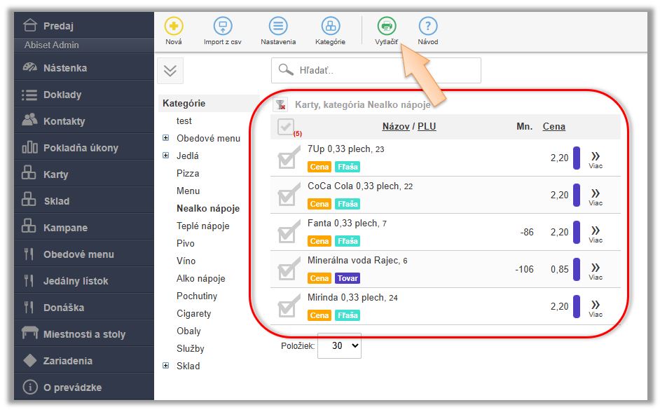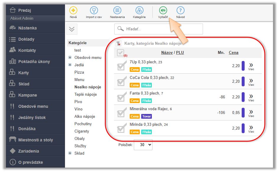 - Cenovky - tlač cenoviek.