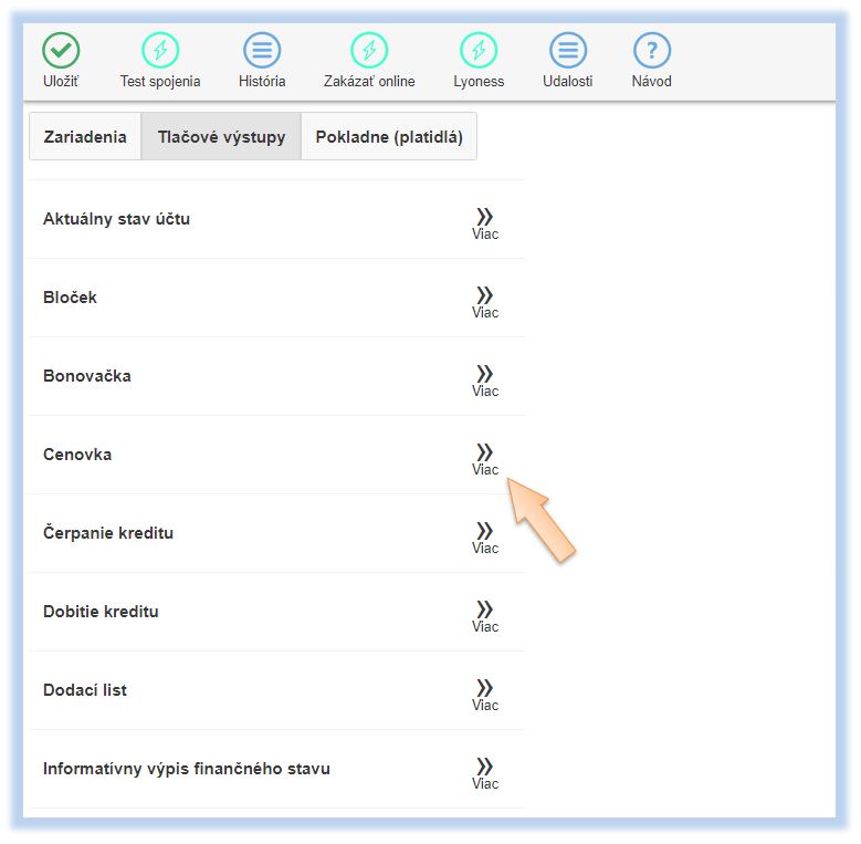 - Kliknite na tlačidlo Cenovky.