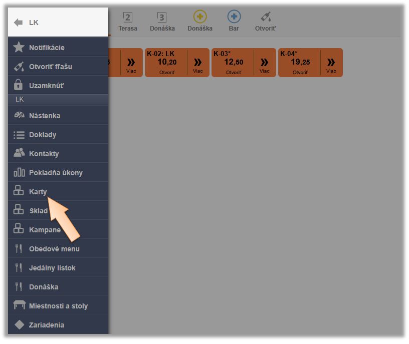 - Kliknite na možnosť Karty v menu aplikácie.
