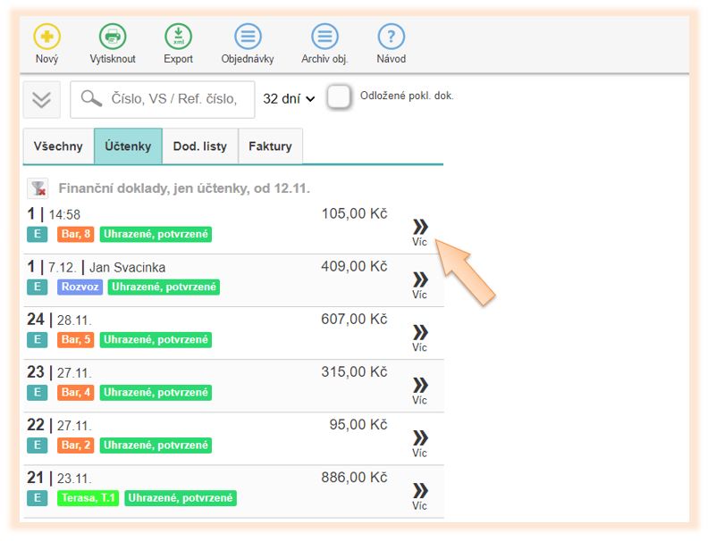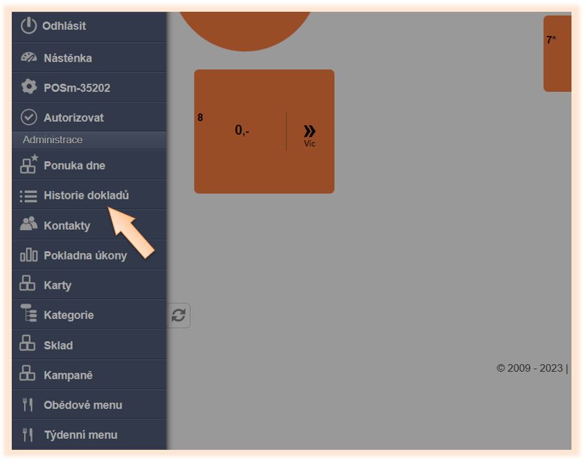 1. Klikněte v menu aplikace na Historie dokladů.