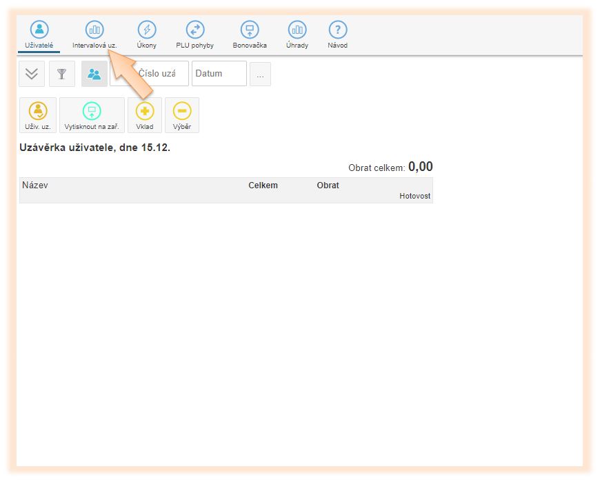 2. Vyberte z nabídky možnost Intervalová uz.