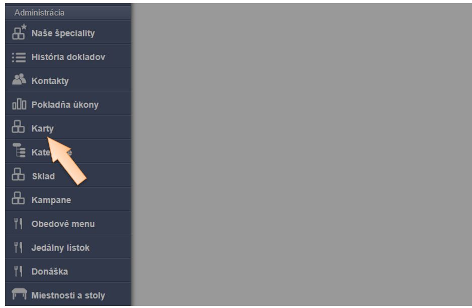 1. Klikněte v menu aplikace na Karty.