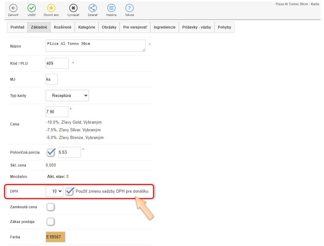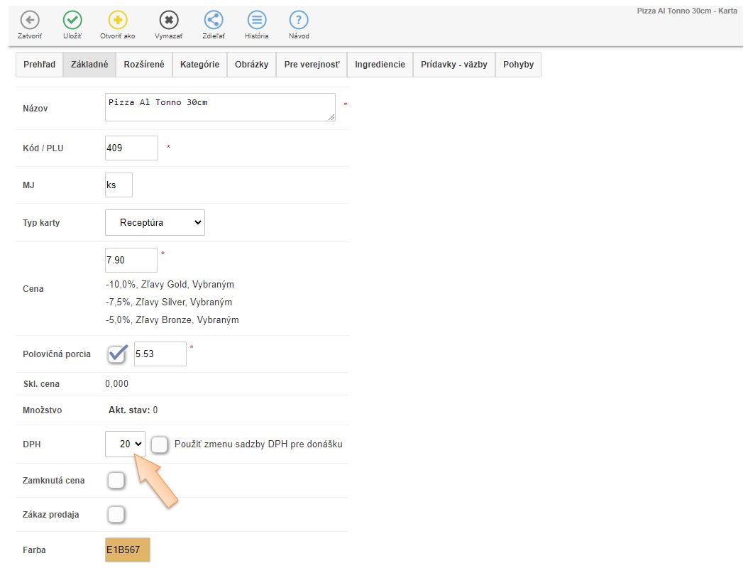 Změna výše DPH na skladových kartách