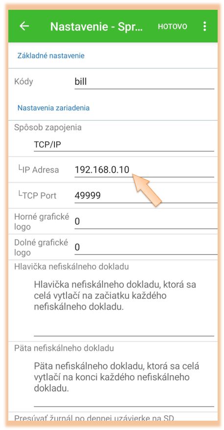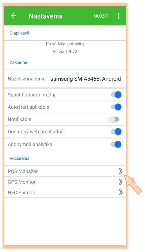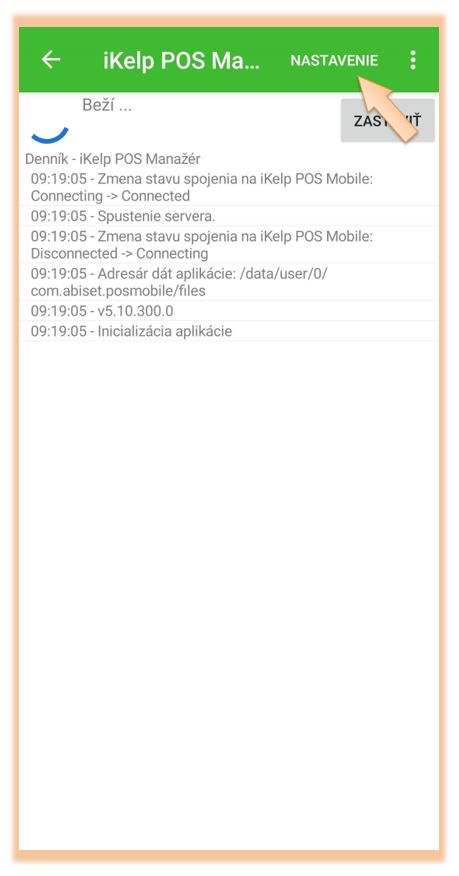 Ak je už vytvorené spojenie medzi samotnou aplikáciou POS Mobile a fyzickým zariadením, je možné prejsť k nastaveniu zariadenia.