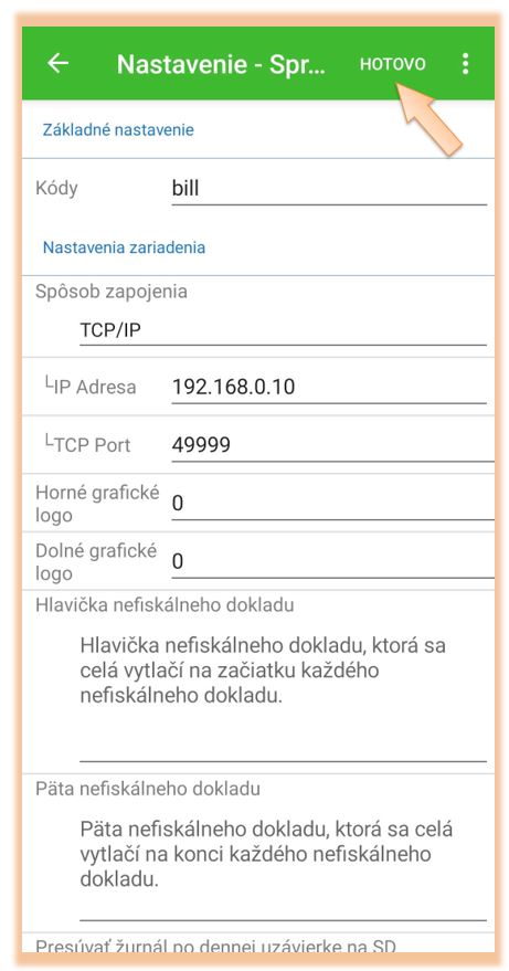 - Kliknutím na tlačidlo Hotovo je potrebné vykonané zmeny v nastaveniach uložiť.