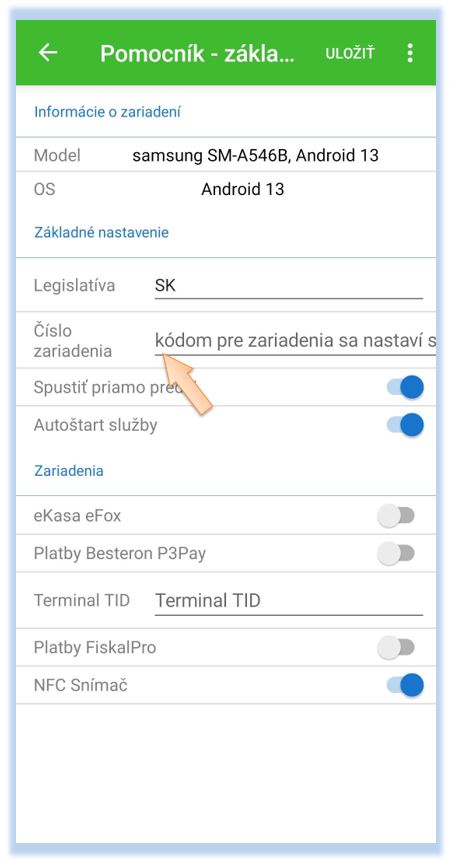 - Číslo zariadenia - číslo pridávaného zariadenia v poradí. (Pre prvé zariadenie nastavte 1, ak už používate eKasa zariadenie, nastavte ďalšie číslo zariadenia v poradí.)