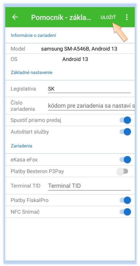 - Ak sa jedná o zariadenie Besteron, ktoré bude slúžiť aj ako platobný terminál, je potrebné nastaviť aj Terminal TID. Tento údaj nájdete priamo v aplikácii Besteron na zariadení.