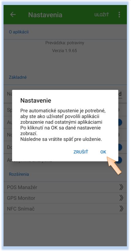 - Povolenie automatického spustenia v nastavení OS android.